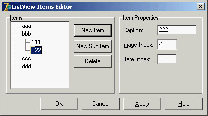 ListView and TreeView ControlsIn the earlier section "Opening the Component Toolbox," I introduced the various visual controls you can use to display lists of values. The standard list box and combo box components are very common, but they are often replaced by the more powerful ListView and TreeView controls. These two controls are part of the Win32 common controls, stored in the ComCtl32.DLL library. Similar controls are available in Qt and VisualCLX, both on Windows and Linux. A Graphical Reference ListWhen you use a ListView component, you can provide bitmaps both indicating the status of the element (for example, the selected item) and describing the contents of the item in a graphical way. To connect the images to a list or tree, you need to refer to the ImageList component you've already used for the menu images. A ListView can have three image lists: one for the large icons (the LargeImages property), one for the small icons (the SmallImages property), and one for the state of the items (the StateImages property). In the RefList example, I've set the first two properties using two different ImageList components. Each item of the ListView has an ImageIndex, which refers to its image in the list. For this technique to work properly, the elements in the two image lists should follow the same order. When you have a fixed image list, you can add items to it using Delphi's ListView Item Editor, which is connected to the Items property. In this editor, you can define items and subitems. The subitems are displayed only in the detailed view (when you set the vsReport value of the ViewStyle property) and are connected with the titles set in the Columns property: