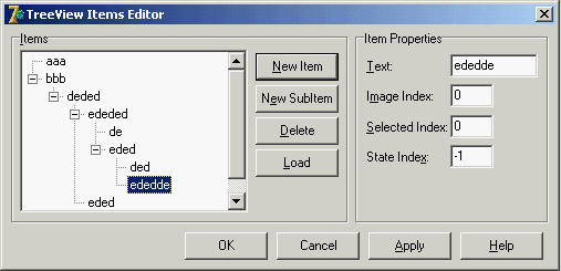 This program is quite interesting, and I'll further extend it in Chapter 9 by adding a dialog box. To build its CLX version, QRefList, I had to use only one of the image lists and disable the small images and large images menus, because a ListView is limited to the list and report view styles. Large and small icons are available in a different control, called IconView. As previously mentioned, the sorting support was already there, which could have saved most of the code of the example. A Tree of DataNow that you've seen an example based on the ListView, let's examine the TreeView control. The TreeView has a user interface that is flexible and powerful (with support for editing and dragging elements). It is also standard, because it is the Windows Explorer user interface. There are properties and various ways to customize the bitmap of each line or each type of line. To define the structure of the TreeView nodes at design time, you can use the TreeView Items Editor: In this case, however, I've decided to load the TreeView data at startup, in a way similar to the last example. The Items property of the TreeView component has many member functions you can use to alter the hierarchy of strings. For example, you can build a two-level tree with the following lines: var Node: TTreeNode; begin Node := TreeView1.Items.Add (nil, 'First level'); TreeView1.Items.AddChild (Node, 'Second level'); Using the Add and AddChild methods, you can build a complex structure at run time. To load the information, you can again use a StringList at run time, load a text file with the information, and parse it. However, because the TreeView control has a LoadFromFile method, the DragTree and QDragTree examples use the following simpler code:
