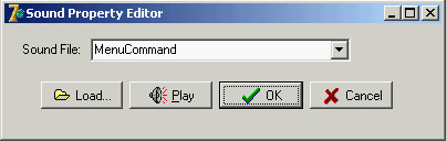 Figure 9.13: The Sound Property Editor's form displays a list of available sounds and lets you load a file and hear the selected sound. The form's first two buttons have a method assigned to their OnClick event: