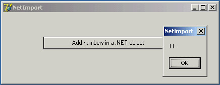 Notice that, unlike a COM server, the interface doesn't require a GUID, following .NET rules (although it can have one using an attribute of the GuidAttribute class). The system will generate one for you. After compiling this code (available in the NetImport folder of this chapter's code) with Delphi for .NET Preview (not with Delphi 7!), you need to perform two steps: First, run Microsoft's .NET Framework Assembly Registration Utility, regasm; second, run Borland's Type Library Importer, tlibimp. (In theory, you should be able to skip this step and directly use the Import Type Library dialog box, but with some libraries the use of the tlibimp program is required.) In practice, go to the folder where you've compiled the library and type from the command line the two commands in bold (you should see the rest of the text I've captured here): C:\md7code\NetImport>regasm netlibrary.dll Microsoft (R) .NET Framework Assembly Registration Utility 1.0.3705.0 Copyright (C) Microsoft Corporation 1998-2001. All rights reserved. Types registered successfully C:\md7code\NetImport>tlibimp netlibrary.dll Borland TLIBIMP Version 7.0 Copyright (c) 1997, 2002 Borland Software Corporation Type library loaded .... Created E:\books\md7code\12\NetImport\mscorlib_TLB.dcr Created E:\books\md7code\12\NetImport\mscorlib_TLB.pas Created E:\books\md7code\12\NetImport\NetLibrary_TLB.dcr Created E:\books\md7code\12\NetImport\NetLibrary_TLB.pas The effect is to create a unit for the project's type library and a unit for the imported Microsoft .NET Core Library (mscorlib.dll). Now you can create a new Delphi 7 application (a standard Win32 program) and use the .NET objects as if they were COM objects. Here is the code from the NetImport example, shown in Figure 12.14: uses NetLibrary_TLB; procedure TForm1.btnAddClick(Sender: TObject); var num: INumber; begin num := CoTNumber.Create as INumber; num.Increase; ShowMessage (IntToStr (num.GetValue)); end; |