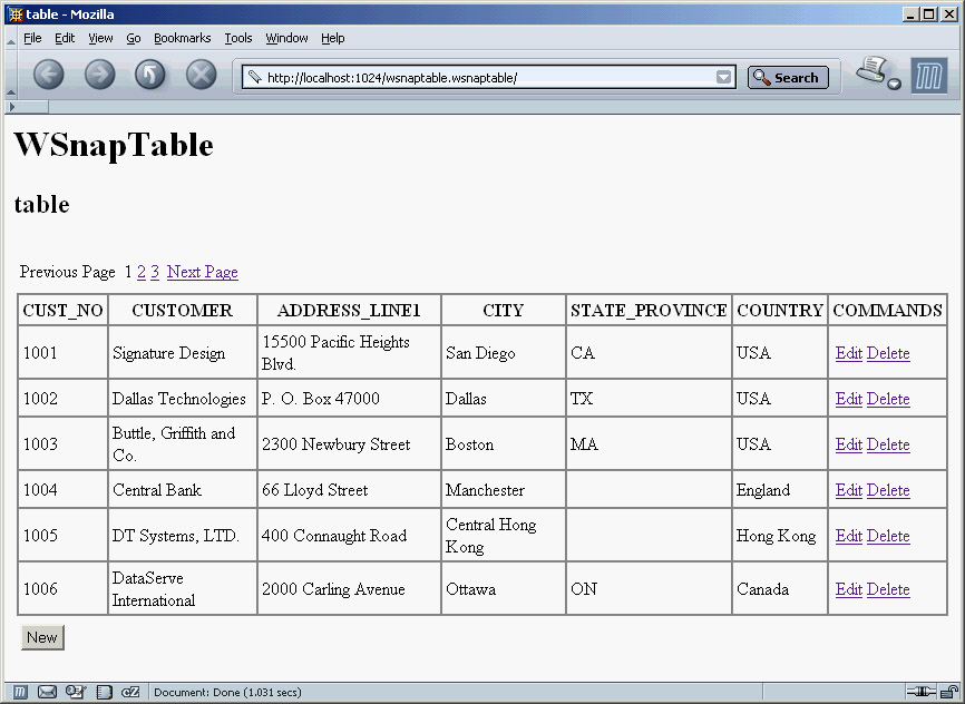 Figure 20.10: The page shown by the WSnapTable example at startup includes the initial portion of a paged table.