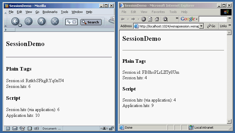 The effect of this program is visible in Figure 20.13, where I've activated two sessions in two different browsers.