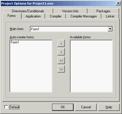 Creating and Closing FormsUp to now I have ignored the issue of form creation. You know that when the form is created, you receive the OnCreate event and can change or test some of the initial form's properties or fields. The statement responsible for creating the form is in the project's source file: begin Application.Initialize; Application.CreateForm(TForm1, Form1); Application.Run; end. To skip the automatic form creation, you can either modify this code or use the Forms page of the Project Options dialog box (see Figure 7.10). In this dialog box, you can decide whether the form should be automatically created. If you disable automatic creation, the project's initialization code becomes the following: begin Applications.Initialize; Application.Run; end. If you now run this program, nothing happens. It terminates immediately because no main window is created. The call to the application's CreateForm method creates a new instance of the form class passed as the first parameter and assigns it to the variable passed as the second parameter. Something else happens behind the scenes. When CreateForm is called, if there is currently no main form, the current form is assigned to the application's MainForm property. For this reason, the form indicated as Main Form in the dialog box shown in Figure 7.10 corresponds to the first call to the application's CreateForm method (that is, when several forms are created at startup). The same holds for closing the application. Closing the main form terminates the application, regardless of the other forms. If you want to perform this operation from the program's code, call the Close method of the main form, as you've done several times in past examples. Form Creation EventsRegardless of the manual or automatic creation of forms, when a form is created, you can intercept many events. Form-creation events are fired in the following order: